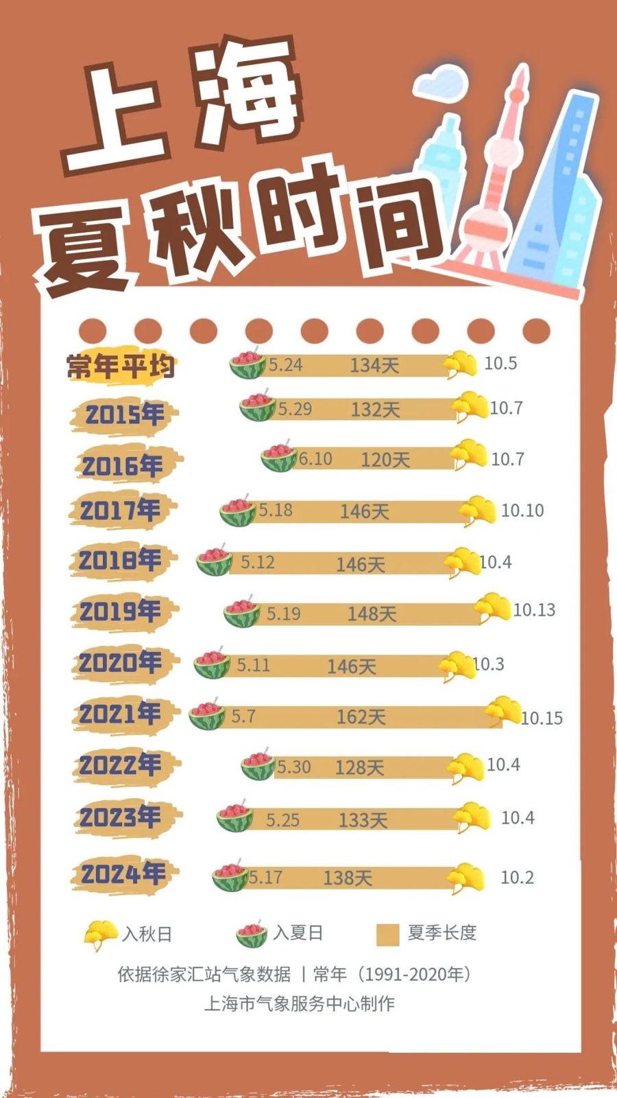 上海的夏天怎么感觉越来越长,其他的季节是不是“合并同类项”了?气象部门表示,和上世纪相比,本世纪的四季平均长度确实有了明显变化,春天长度变化较小,夏天明显变长,秋天和冬季都变短了。数据显示,上海夏季天数常年平均为134天,去年夏天长度为138天,而今年夏天从5月12日开始至今已达150天,并且从目前的预报来看,夏季仍将维持一段时间。