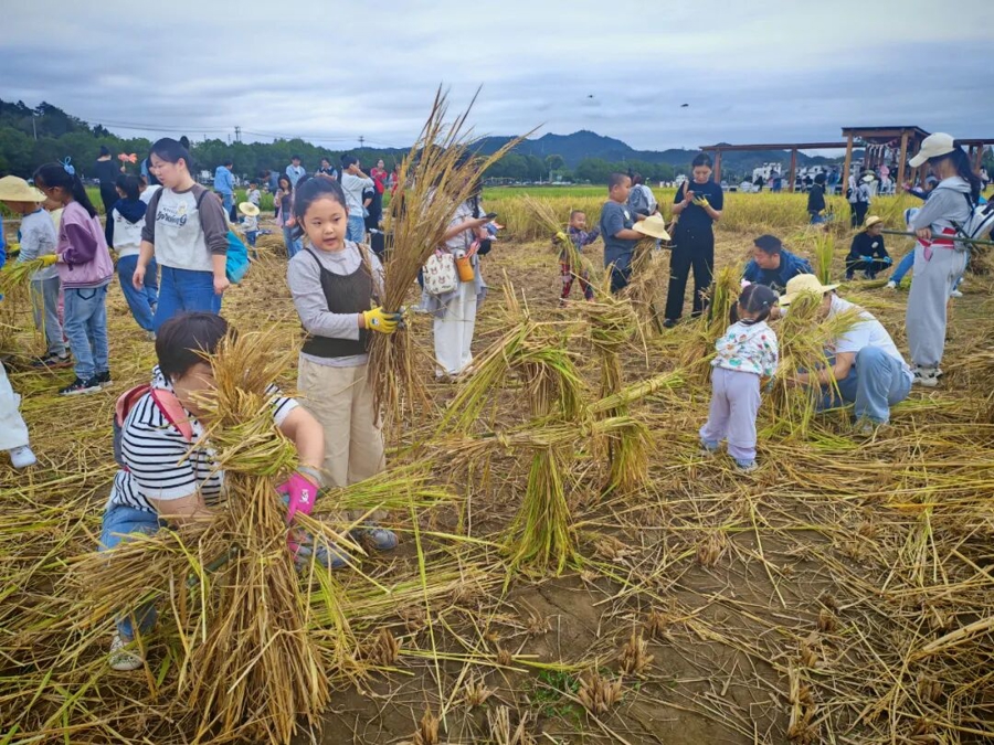 活动中,割稻体验不仅是一次劳作,更是屯光镇推动一产(农业)与三产(文旅服务)融合的缩影。通过亲子研学引流,当地将抛荒闲置稻田转化为教育场景,既盘活了农业资源,又打开了研学旅游新市场。一方面,活动直接带动了汉沙村的人气与经济收益,为农民增收开辟新路;另一方面,它前瞻性地提出“春夏秋冬”系列研学产品(如插秧、采茶、摘果、割稻),形成季节化、可持续的产业链条,构建“产业+文化+教育”的生态闭环。这种模式,不仅为屯光镇打造“东部乡村诗画旅游廊道”注入辨识度,更以“小而美”的实践,为黄山市乃至全国农文旅融合提供借鉴。