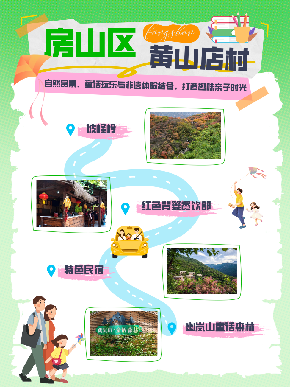 游玩攻略:房山黄山店村这条线路,把自然野趣、地道美味与亲子欢乐悄悄织在了一起:坡峰岭漫山黄栌春秋皆景,6公里平缓步道全家都能轻松走;步行几分钟就到红色背篓餐饮部,现压饸饹面等农家菜暖胃又解馋;周边云上石屋、黄栌花开等特色民宿离餐饮部不过1公里,推门就是乡野惬意;从民宿开车10分钟到幽岚山童话森林,蹦蹦云、萌宠等设施让大小朋友都能撒欢玩个够 。