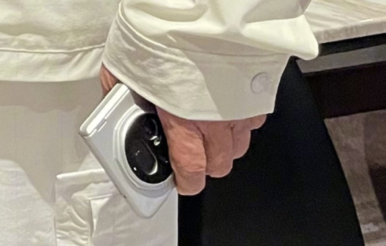 成龙和贝克汉姆的合影,手上握着手机。把照片放到最大,能确定成龙还用的一定不是苹果手机,而是国产的荣耀Magic V5,和他发微博显示的手机同一品牌和型号。