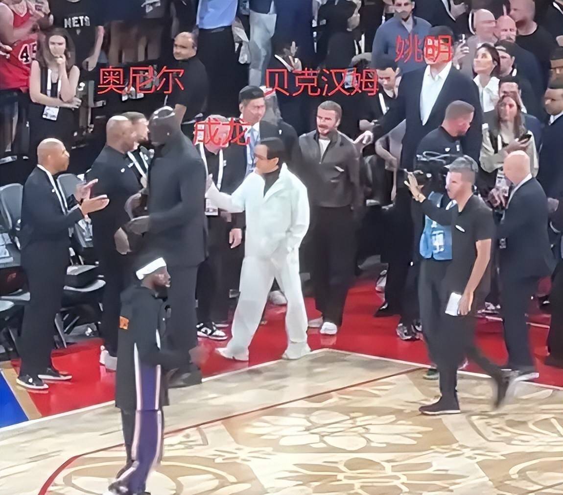 在这种场合下,“香港顶流”姜涛都显得有些黯然失色。当观众席坐的七七八八后,巨星们开始进场了,奥尼尔、成龙、贝克汉姆和姚明一字排开。