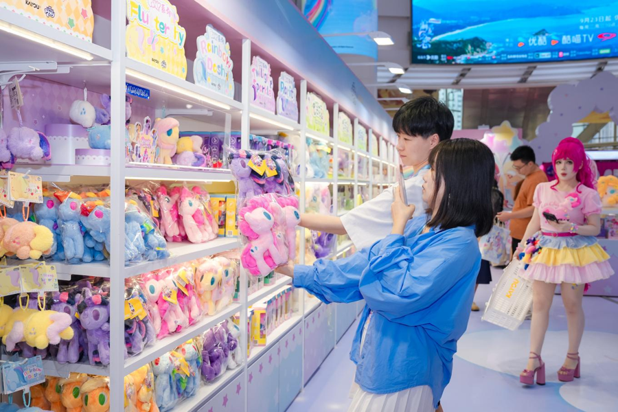 随着年轻群体对“情绪价值”的追求提升,兼具情感联结与设计感的毛绒产品成为IP衍生品新蓝海。9月底至10月26日,卡游联合孩之宝打造的小马宝莉“星愿派对”主题快闪正在上海静安大悦城举行。此次快闪以上海为核心阵地,凭借100余款全新周边首发,尤其以毛绒产品为核心拓展的新品类,为上海年轻消费市场注入持久活力,成为实体商业的亮眼风景线。