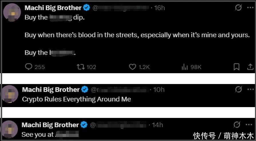 从黄立成的表现看,他似乎隐隐约约有了危机感,赔掉3.8亿回应表示过程有趣之后,他又接连更新多条社媒,一边表示越是血流成河越要投资入场,一边感慨“Crypto Rules Everything Around Me”。